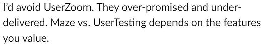 Usertesting.com — Usertesting costs $110 for a remote, unmoderated interview. For live, moderated interview, it was $220. This was for startups.